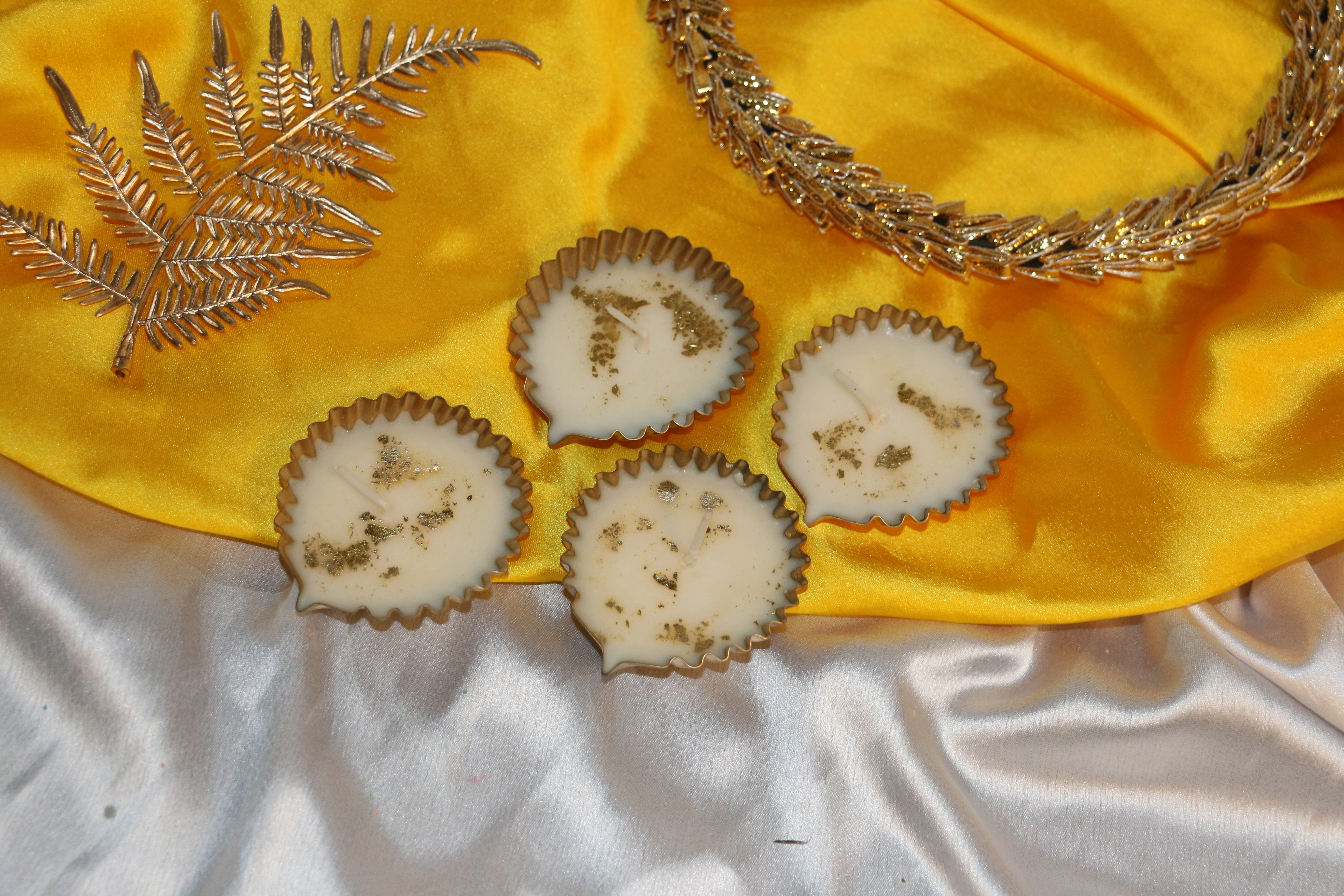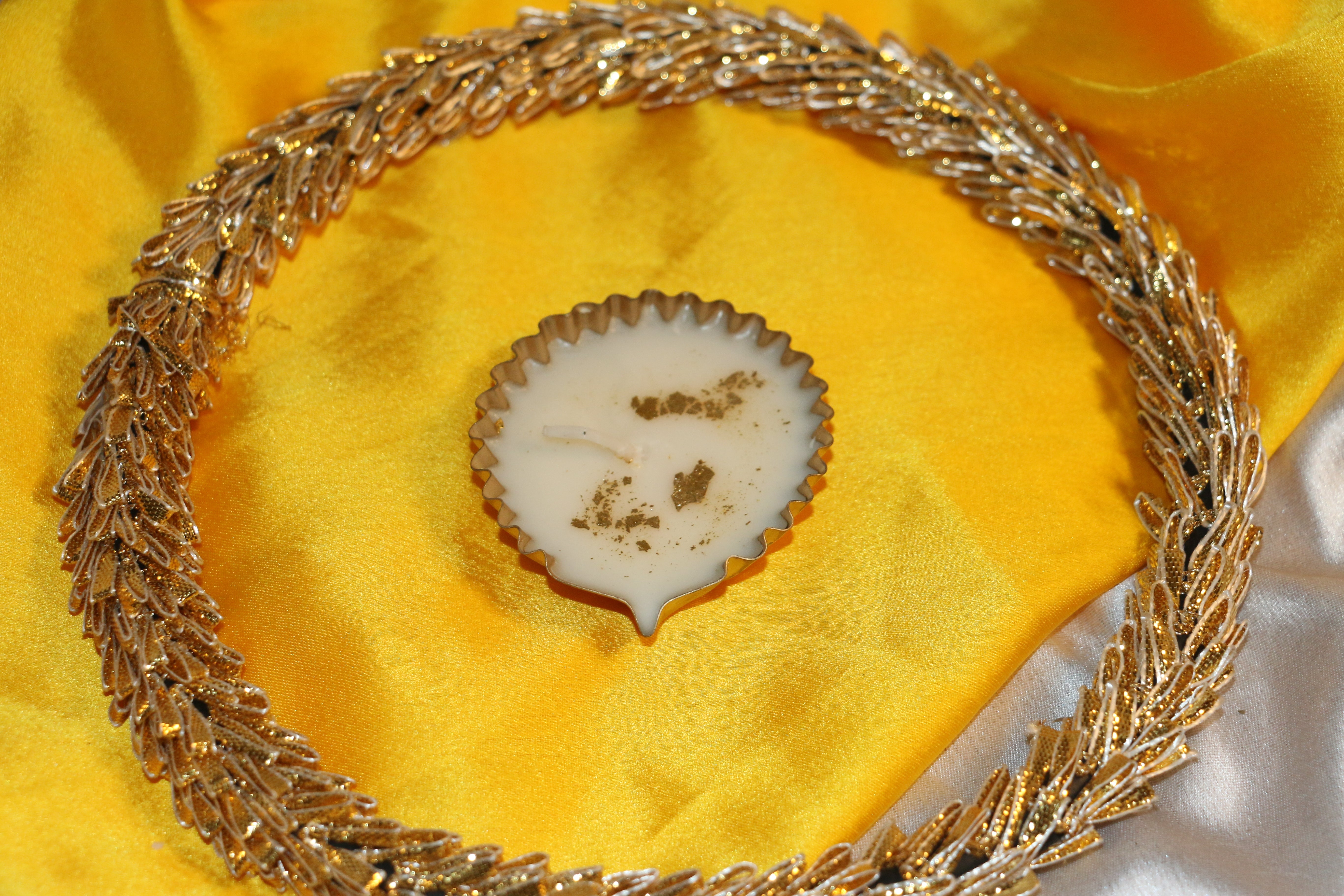 Crafted in a beautiful metal container shaped like a diya, this candle shines with a rich, golden glow — adding a touch of ethnic elegance and festive charm to your home décor.