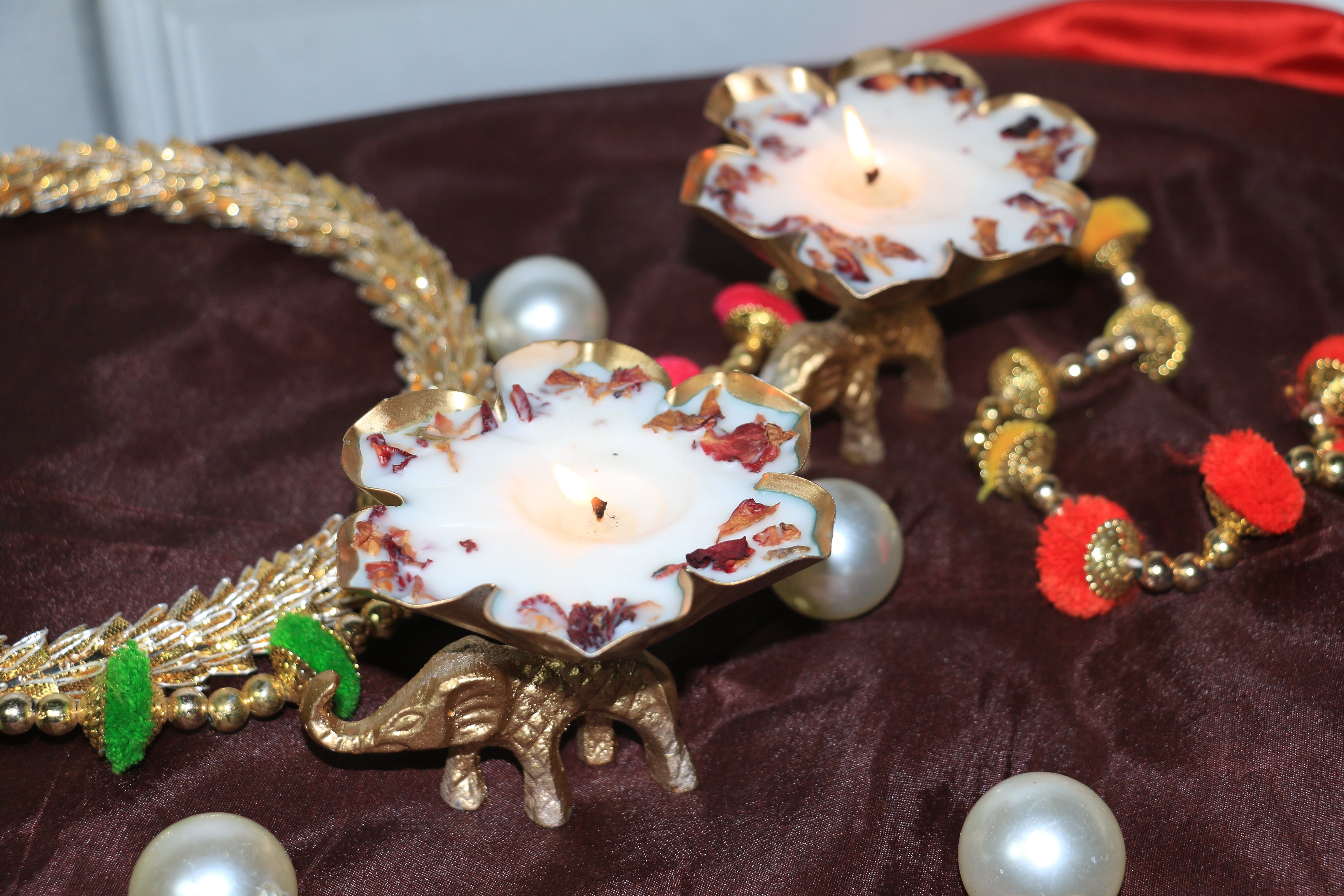 Every element of this candle speaks of elegance and Indian craftsmanship — from the intricate elephant design symbolizing strength, wisdom, and prosperity, to the blooming lotus urli that represents purity and peace. When lit, it creates a mesmerizing glow, adding warmth and charm to any corner of your home.