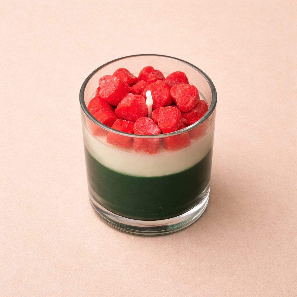 A fresh green base paired with a clean white layer gives this candle a premium, modern, and eye-catching appearance.
