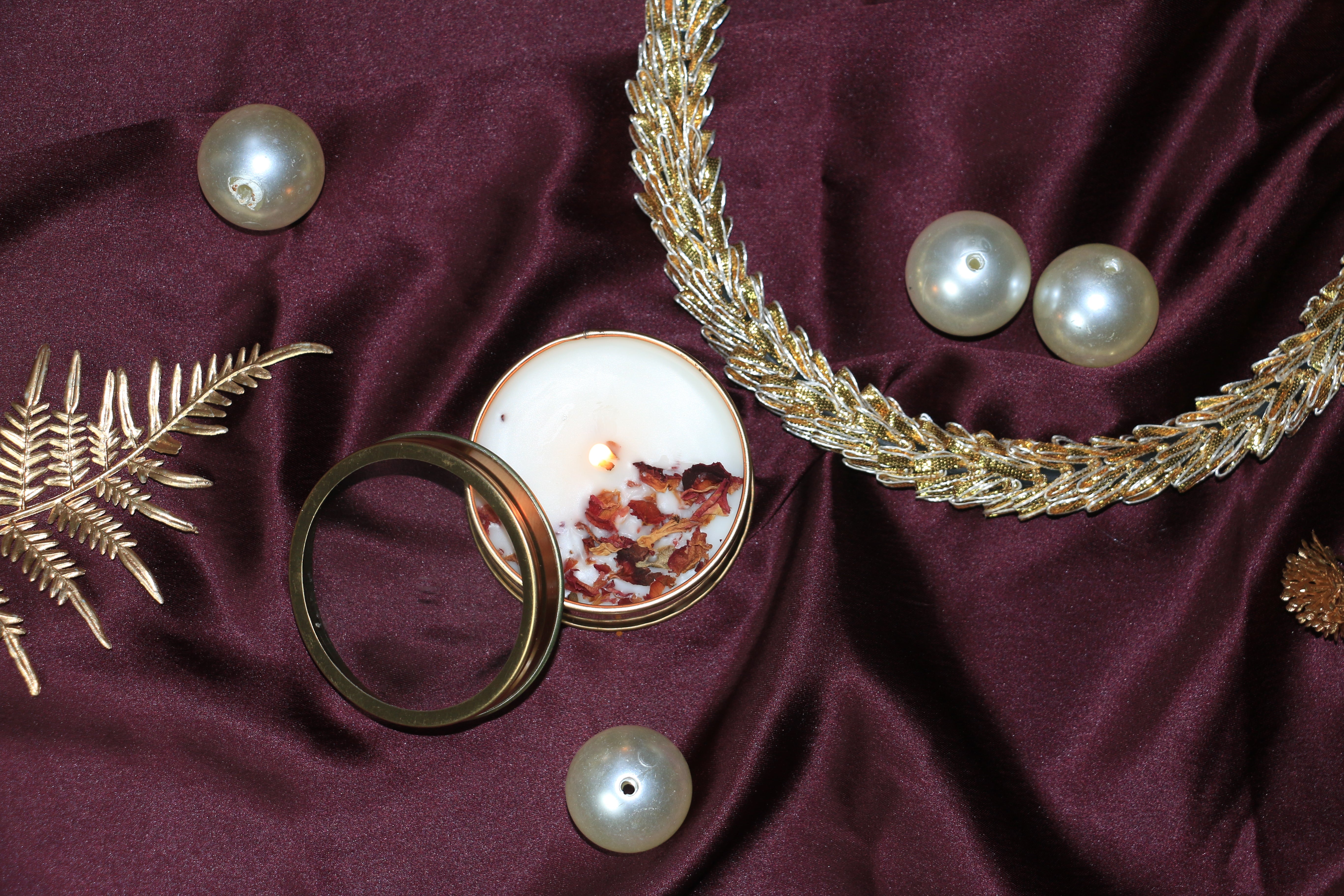 Encased in a chrome-finished round jar with a transparent acrylic window lid, it lets you peek into its beauty — delicately topped with real dried rose petals that make every piece look as special as it smells.